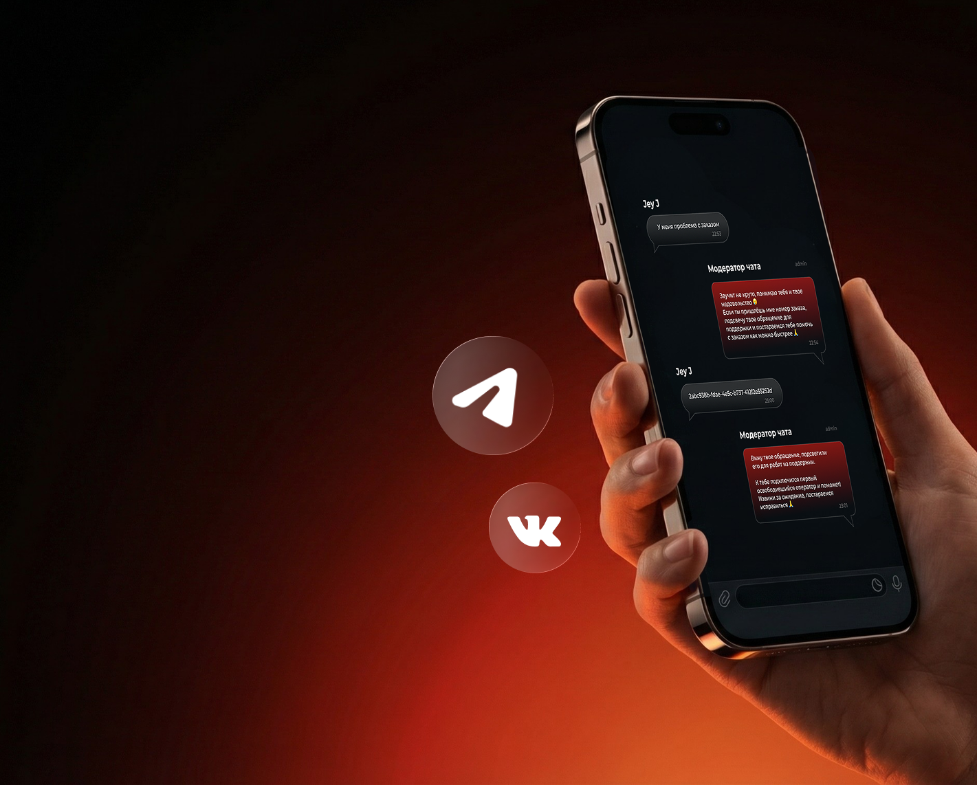 Получает данные из CRM / базы знаний. Отвечает клиентам и помогает решать проблемы с заказами по алгоритмам.